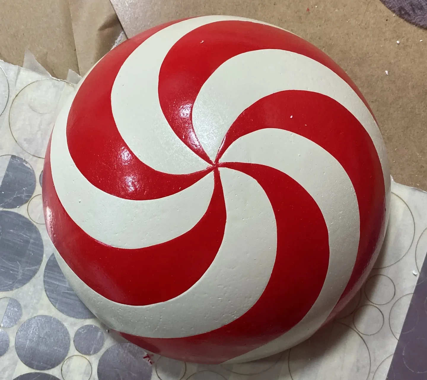 Each element was formed from carved styrofoam spheres and custom 3D-printed components. The surfaces were built up with multiple coats of primer, painstakingly sanded smooth, then hand-painted and masked in successive layers to achieve crisp detailing. A high-gloss varnish completed the process, adding depth and commercial durability.